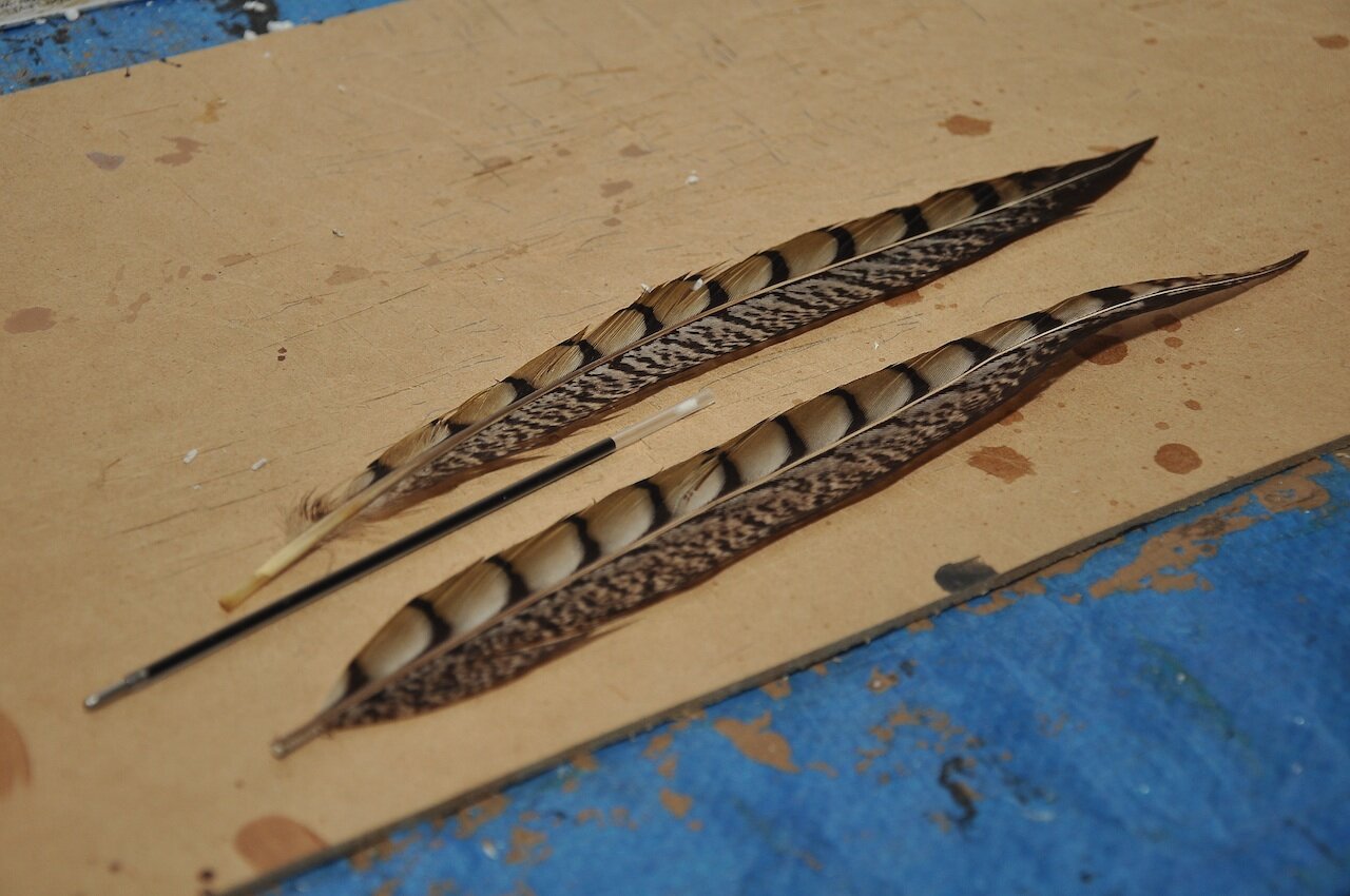 We bought some feathers from a craft shop, and a cheap black pen. We pulled the pen apart so were left with the middle ink part. Now we wanted to disguise the pen inside the feathers, so we glued two feathers either side of the pen with Araldite. Now it just needed something to cover the base of the feathers to make it easier to write with but it still needed to look antique and fit with everything that we were doing. We found some twine and wrapped it around a few times and this finished it of nicely.
