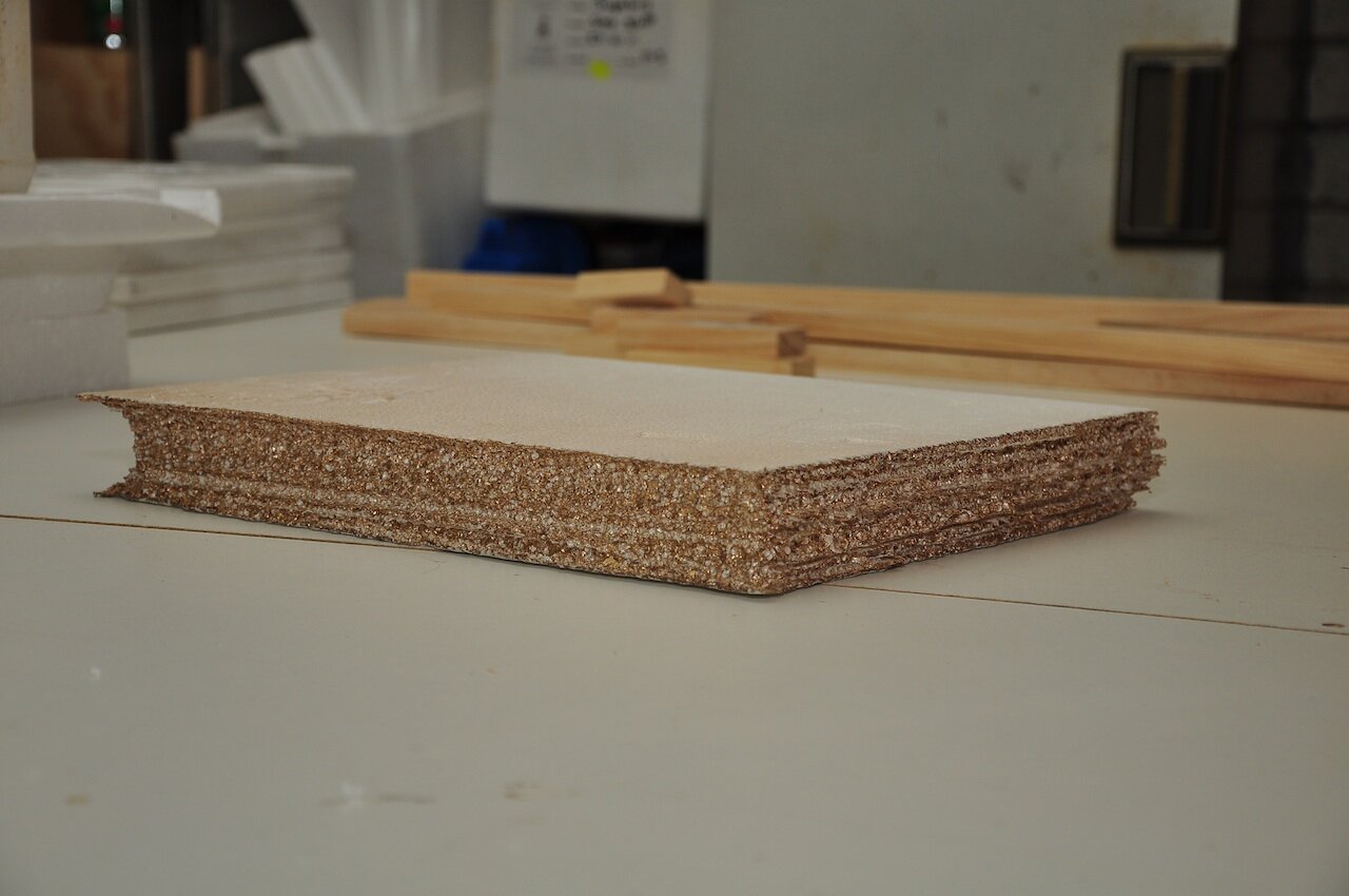 Next I cut out the front and back covers from foam core board so that they were slightly larger than the foam. We placed the top and bottom covers on the foam so we could get the measurements for the spine which was cut from a roll of cardboard.