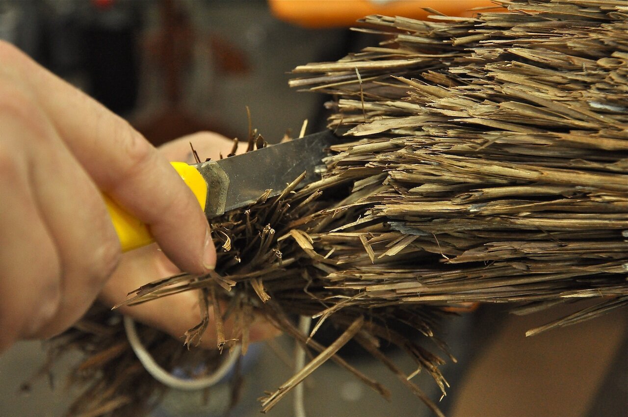 When the first section had dried I moved onto the next section and did the same. Now at this point we needed to start trimming and shaping it down to get that sleek look. Then we just keep on doing the same until we reached the end. Last thing left to do was to trim the fronds to the desired length.