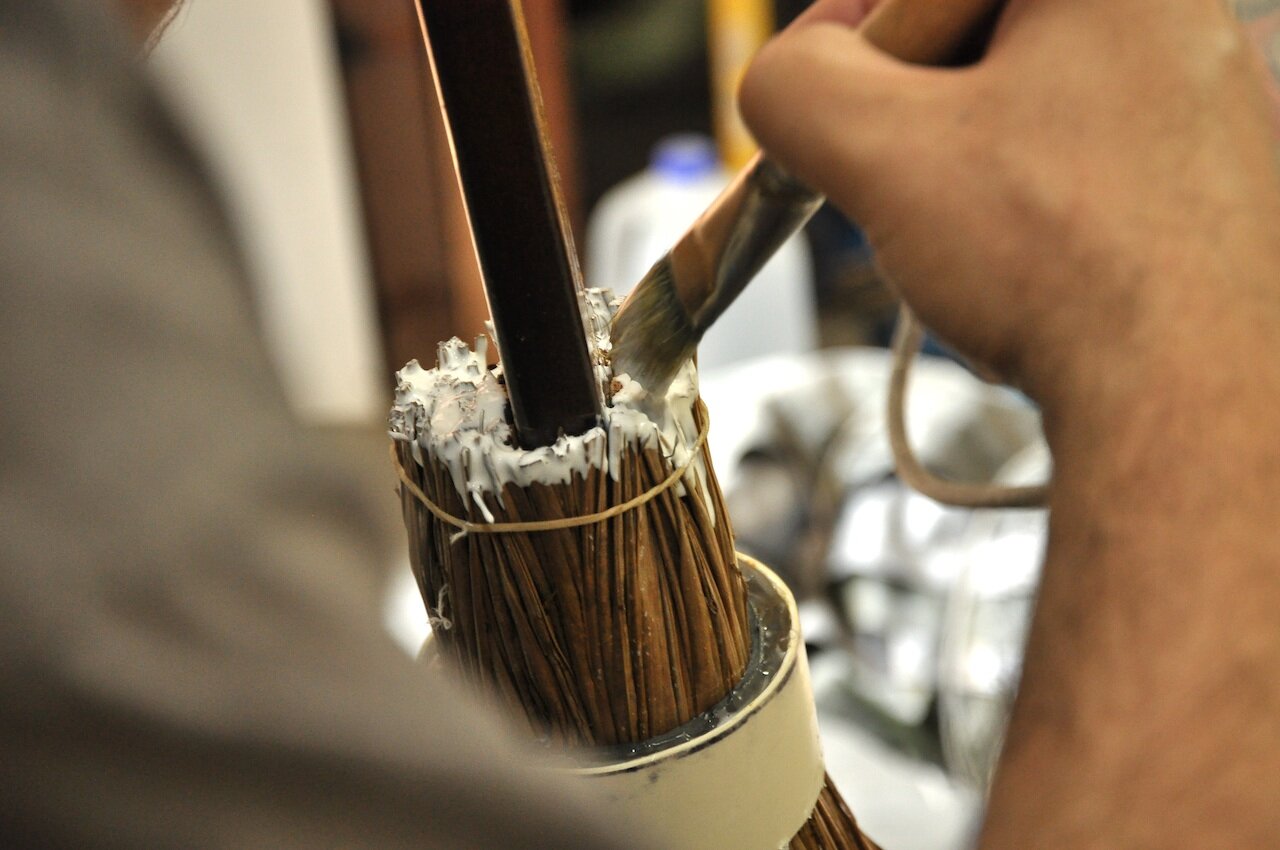 Once we had the front tied off, I brushed some PVA glue onto the fronds.