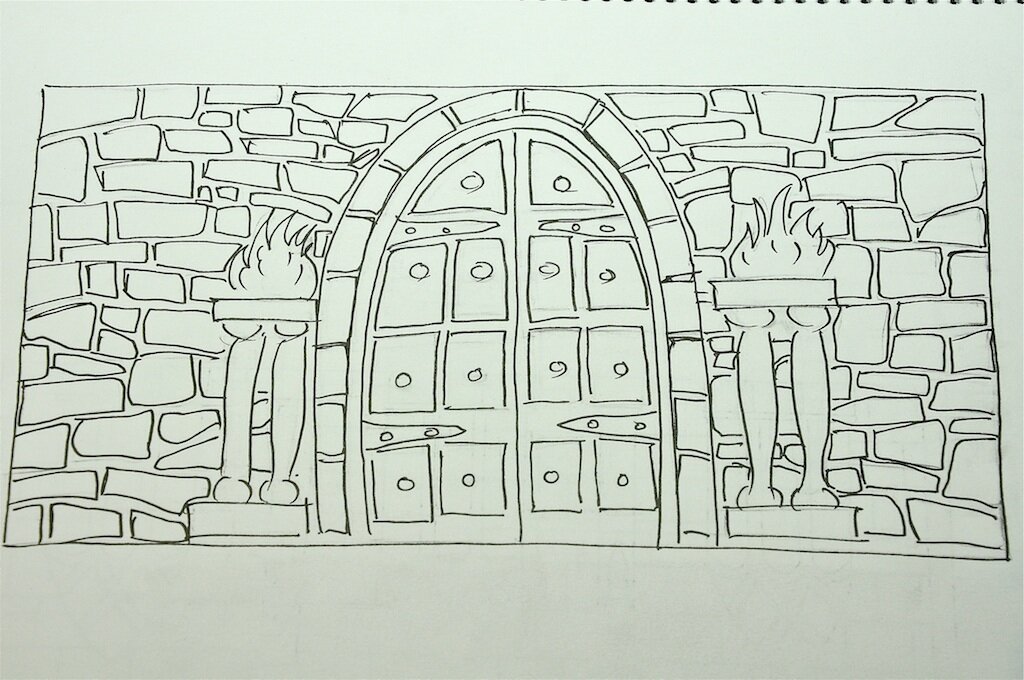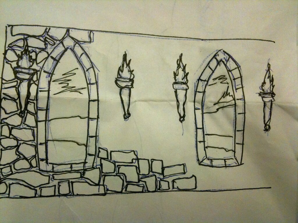 I drew the two sections of the set that would go up against our house. We weren’t sure what we would do for the other two sides but I had my concept plan now I just need to work out how to get a believable stone look. I didn’t know how to do it then but I knew that we would figure it out …..