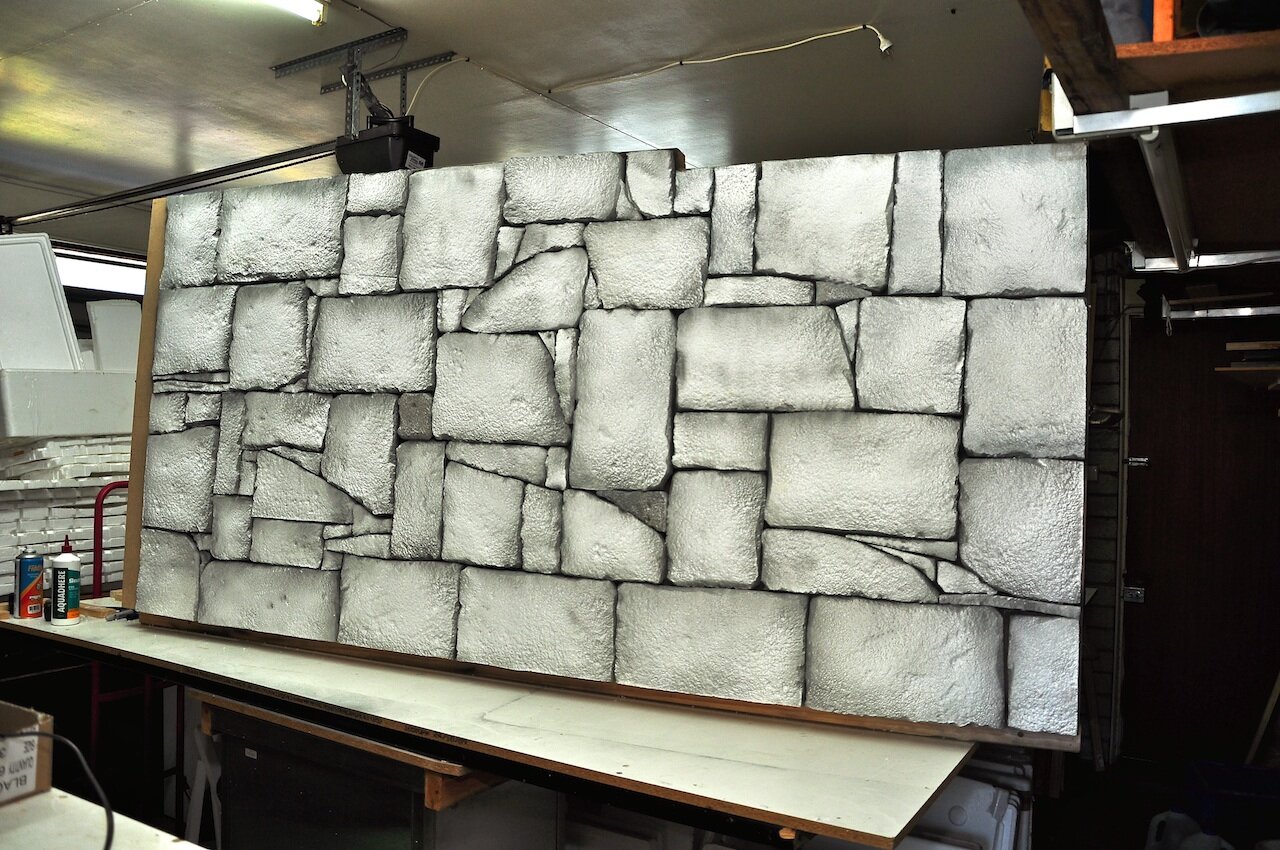 After glueing the foam in place I sprayed them with some leftover enamel paint I had in the garage, they really looked like rocks. So I took some photos and showed some of my friends at work, they were really impressed at how realistic it looked, so I knew I had found how to do it.