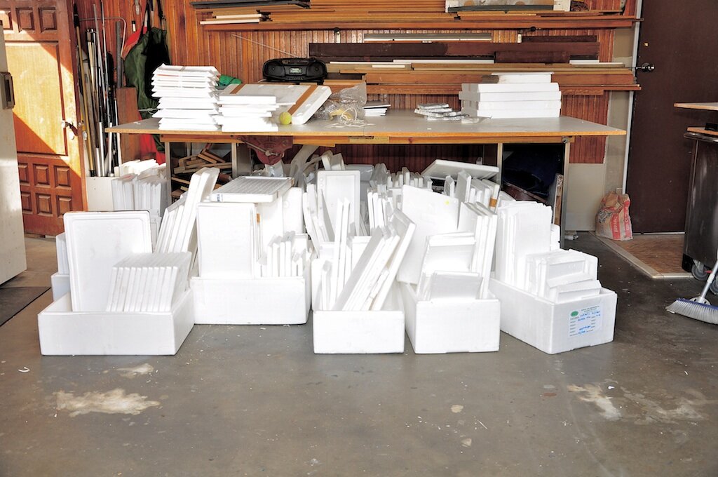So my mission started; collect as much foam as possible. I was fortunate that where I worked they would get a lot of cold food packaged in foam boxes, so we had heaps that we had to throw away each day. I would collect them cut them to pieces and take them home each night. After a month I had so much foam in garage I was running out of room and I hadn’t started anything yet, I was just collecting.