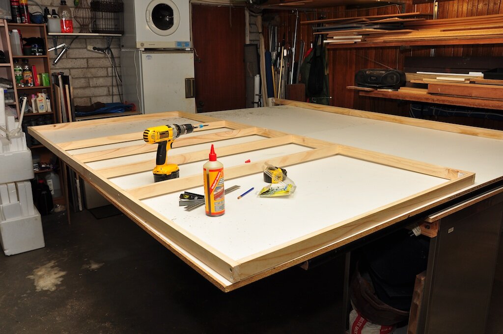 I decided to make them fold in half for easy handling and storage in my garage. That night Leon and I started framing up the first of the six sections. I do have a work shop but I choose to use hand tools to show you how easy it is to build sets with just the basic tools. You would be staggered at how easy these are to make.