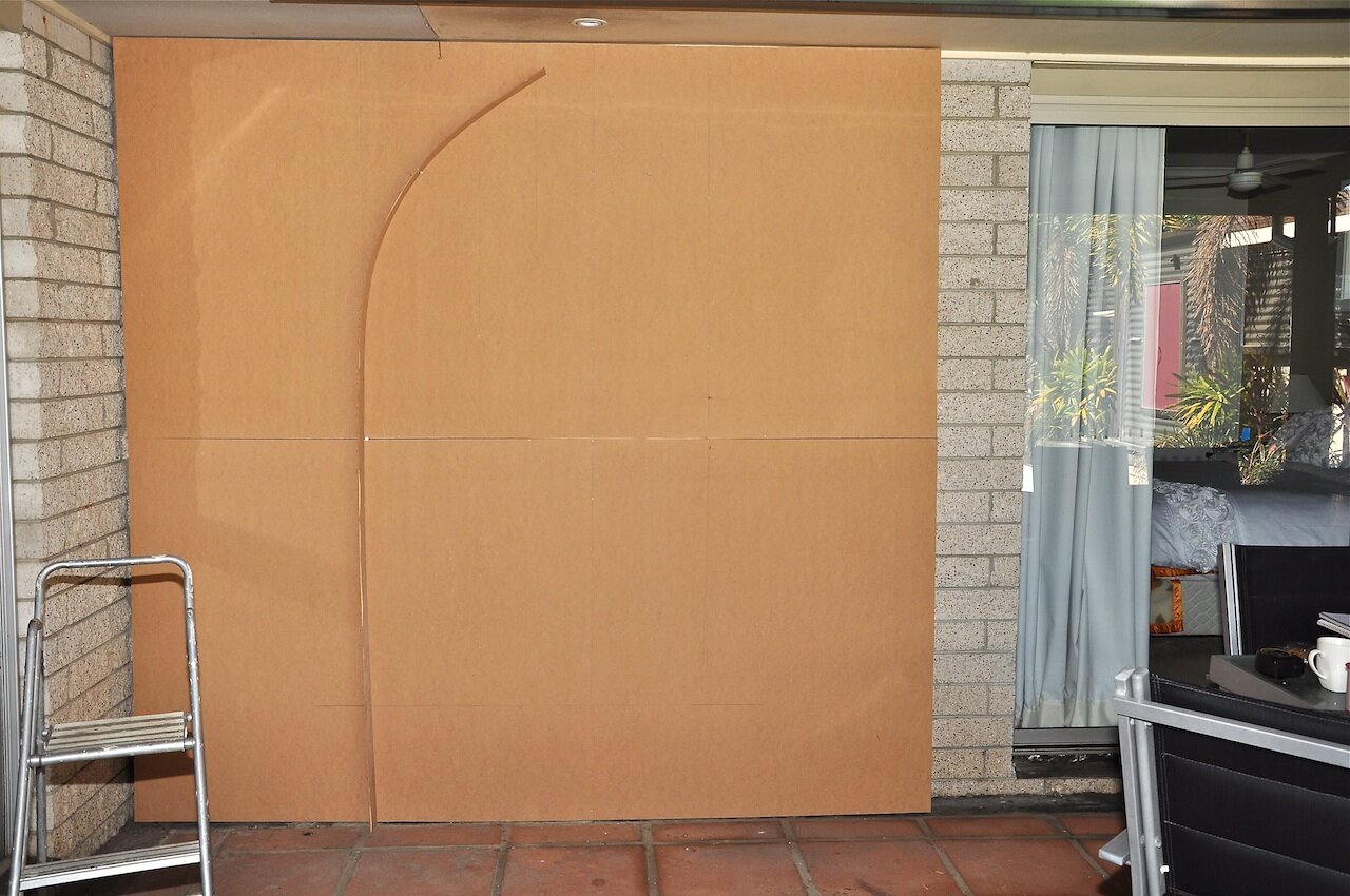 What I had initially drawn was a 7 meter (23 foot) wall with three arched windows and two pillars, but when I measured it against my wall and put masking tape where the windows would go, it didn’t look quite right. So I decided on just the two windows. The challenge I had then, was what could I put on the wall to balance everything up?