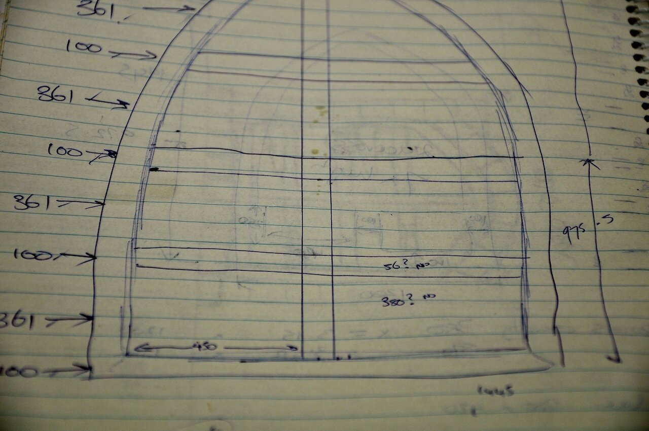 I had drawn up a rough sketch of what I wanted the door to look like, I worked out the width of the foam for the door rails and styles and then divided the rest of the space evenly into eight sections, this gave me the measurements I needed for the foam which was to be the eight raised panels.